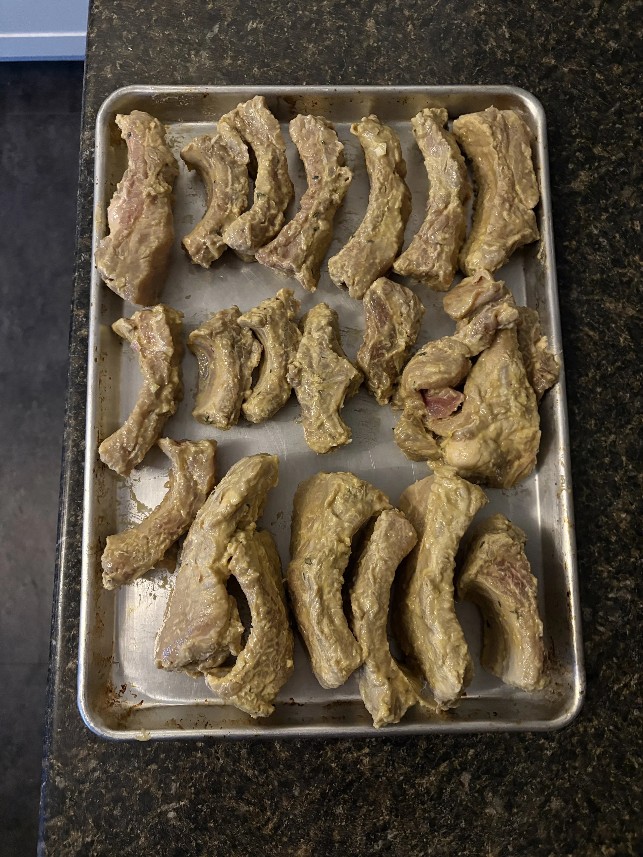 2 Baby Back racks of Ribs, cut into two bone pairs
