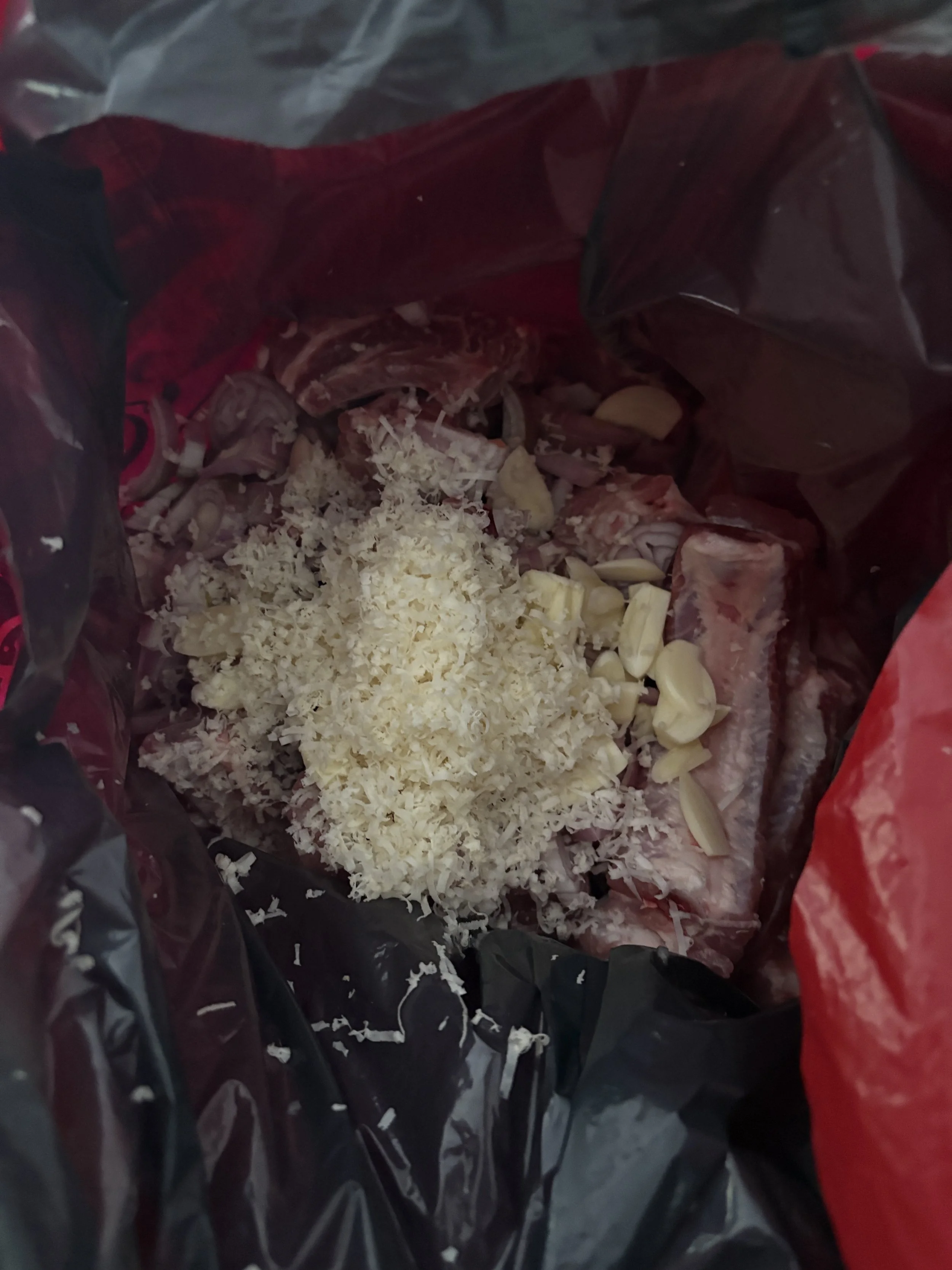 Place the dried ribs into a double lined bag with plenty of extra space