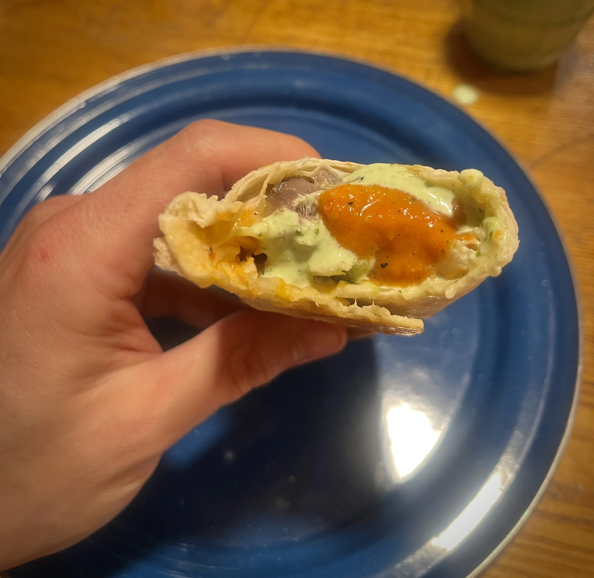 Serve the burrito and top with extra salsa and creama as you hold hot heaven in your hand