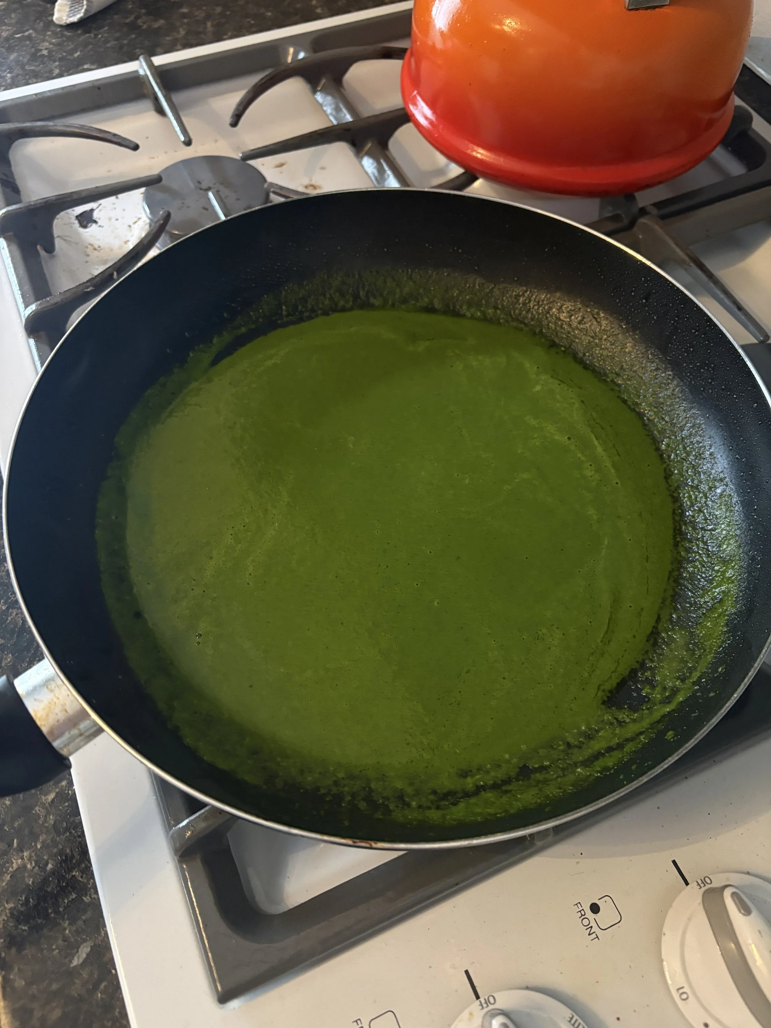Blend into a smooth sauce (the blanching should allow for a vivid green color, and a smoother texture)