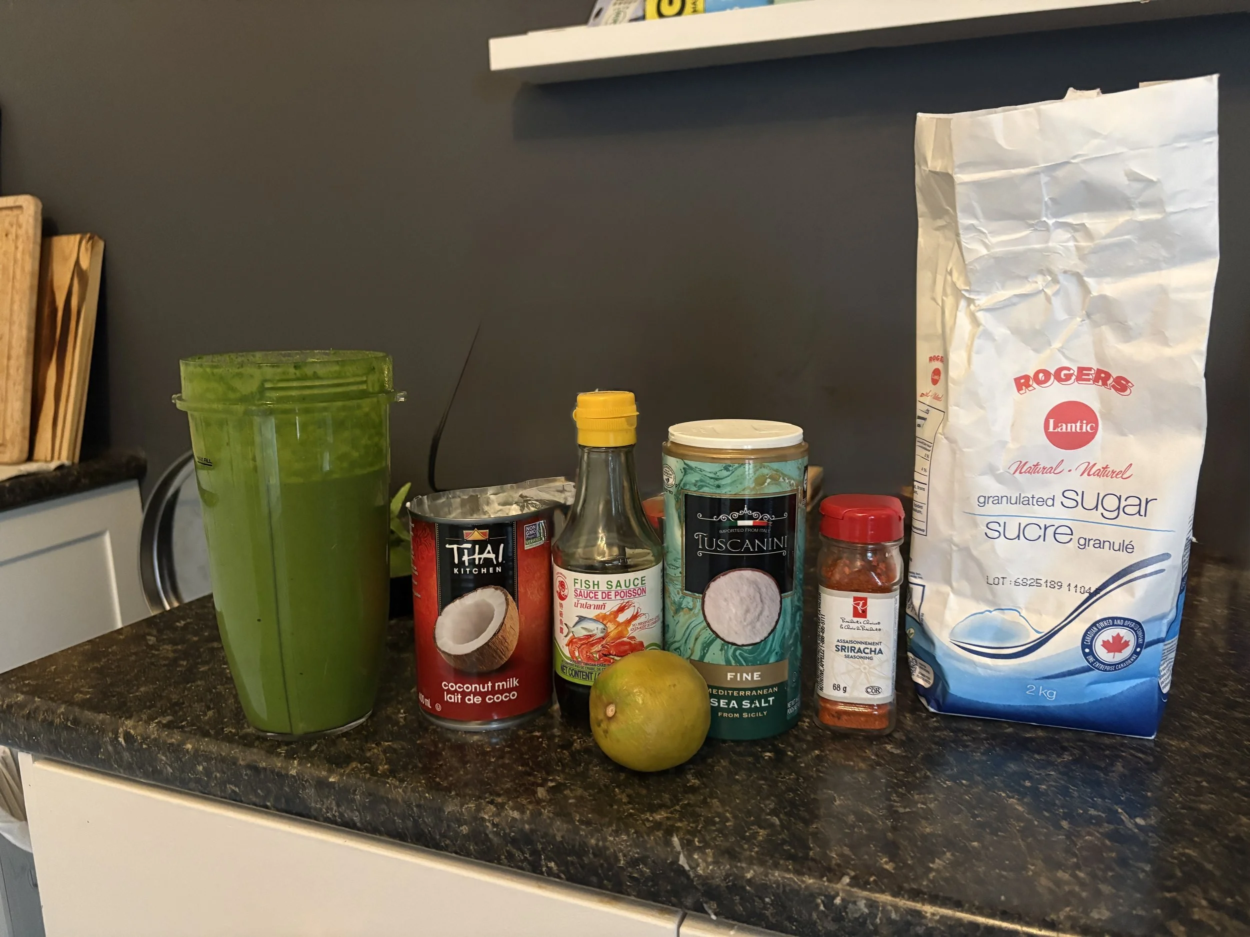 Add the Garlic, Ginger, Coconut Fat, Fish Sauce, Lime Juice, Salt, Sugar, and Sriracha powder to the processor, and blitz to combine