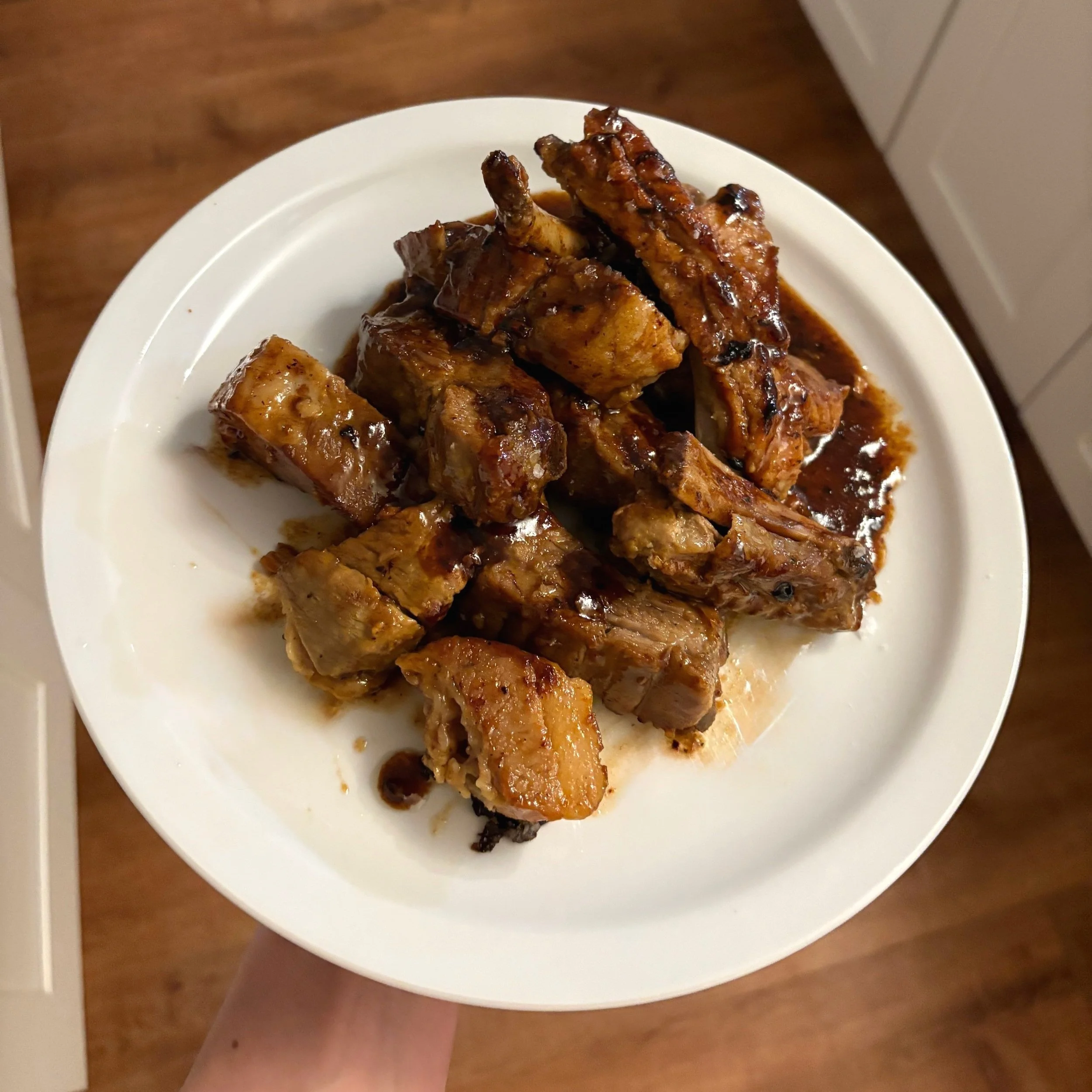 Ribs Braised in Chilies and Pork Broth. Finished in a pan to a tossed sticky excellence
